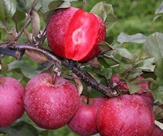 Селекция ФРГ. Дерево среднерослое, морозостойкость высокая. Сроки цветения апрель-май. Плоды раннезимние, красные с белыми точечками. Сорт очень популярен в Англии. Мякоть необычная - ярко красного цвета, сочная, вкус отличный. Вес плода 170-190 гр. Созревает в сентябре. Отлично хранится.